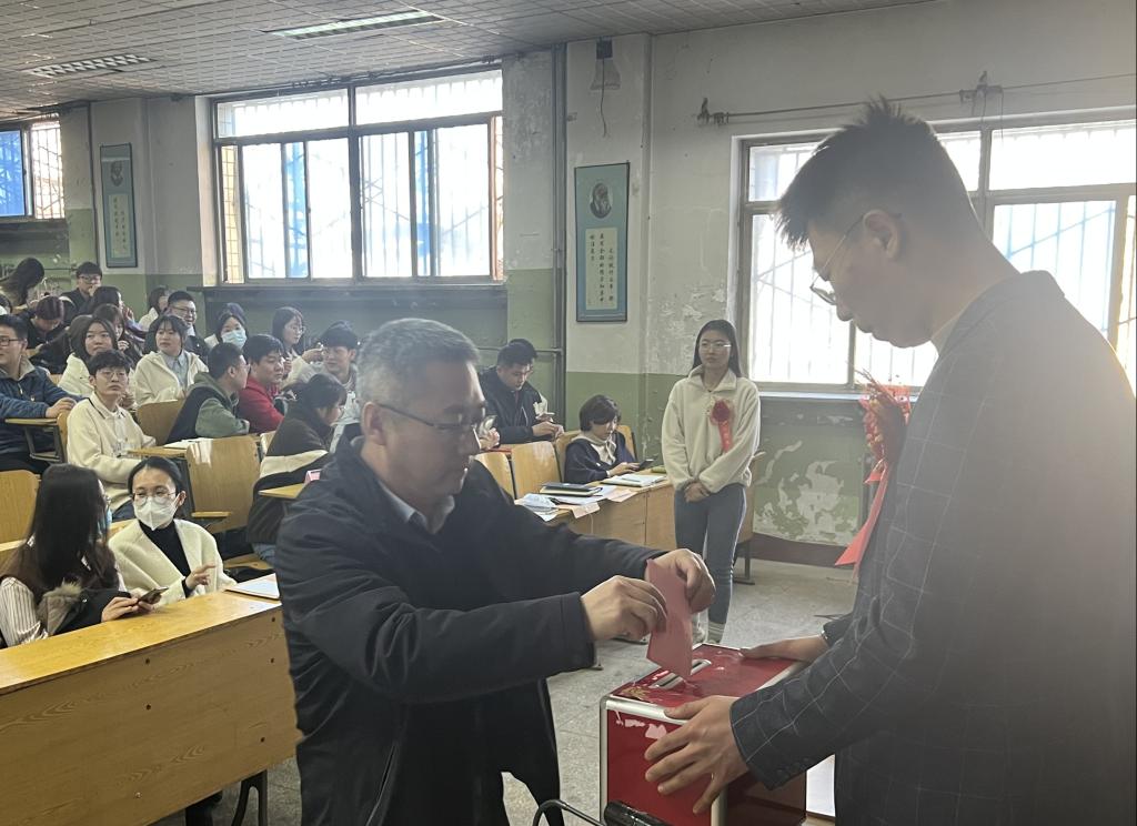 2023年3月1日,太阳集团网tyc9728在成教楼二阶召开了党委换届党员大会。会议由孙明明副书记主持。