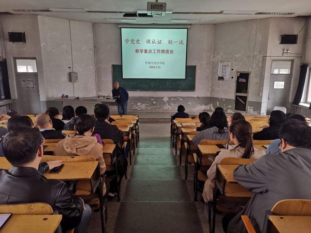 3月31日下午两点半,学院全体教职工在A楼2阶,召开“学党史、促认证、创一流”教学重点工作推进会。会议由副院长郭少青主持。