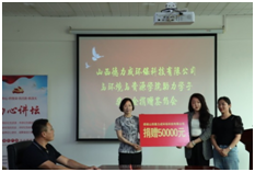最后,郭少青院长代表学院接受了山西德力成环保科技有限公司“德力成”奖教学金。兰国生书记代表学院向山西德力成环保科技有限公司颁发捐赠证书。