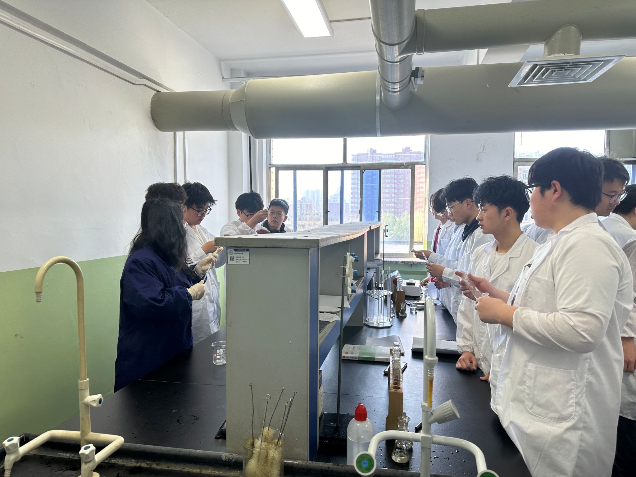 实验室内,学生们分组进行各类环境监测和资源利用的实验。从水样分析到土壤成分检测,从可再生能源实验到废弃物处理研究。在实验过程中,学生们严谨操作、仔细观察、认真记录,培养了科学研究的精神和团队协作的能力。
