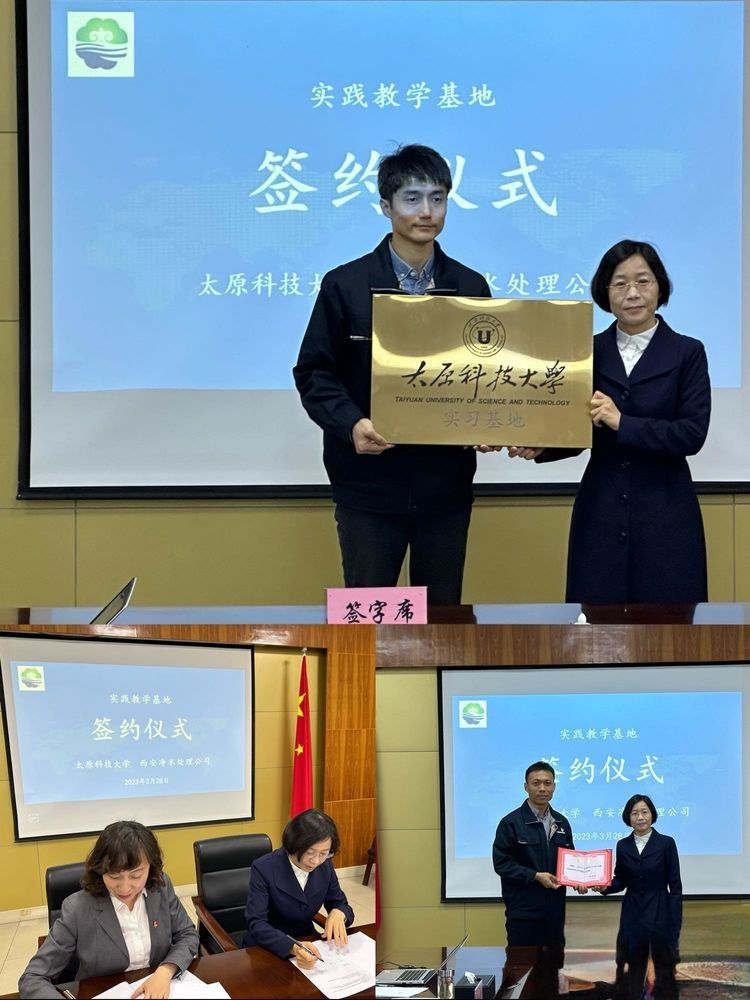习近平总书记在党的二十大报告指出,强化就业优先政策,健全就业促进机制,促进高质量充分就业。为深化产教融合,创新人才培养模式,拓宽学生实习和就业渠道,3月28日,太阳集团网tyc9728郭少青院长以及环境工程专业老师等一行6人赴西安净水处理有限责任公司,签订校企合作实践教学基地协议。本次会议由西安净水处理公司工会主席武英主持。